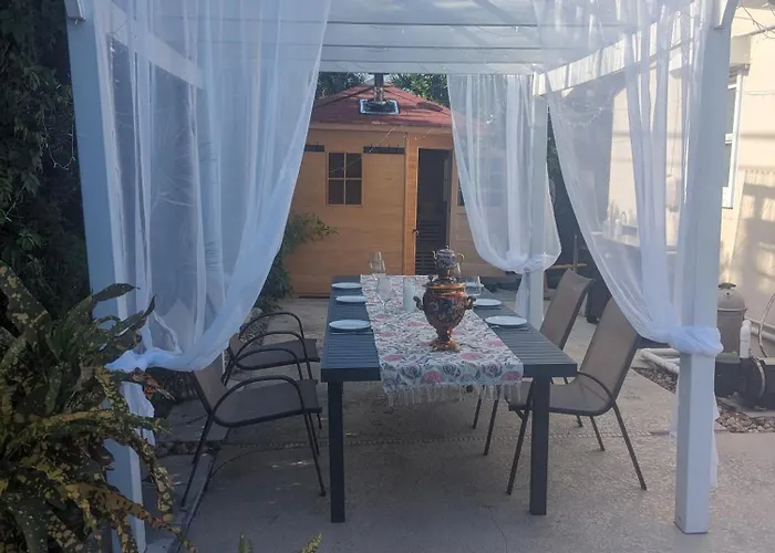 The rooms include a multi-channel TV and climate control as well as a fully equipped kitchen with a microwave oven, a fridge, and kitchenware. The bathroom boasts a bath and a shower.